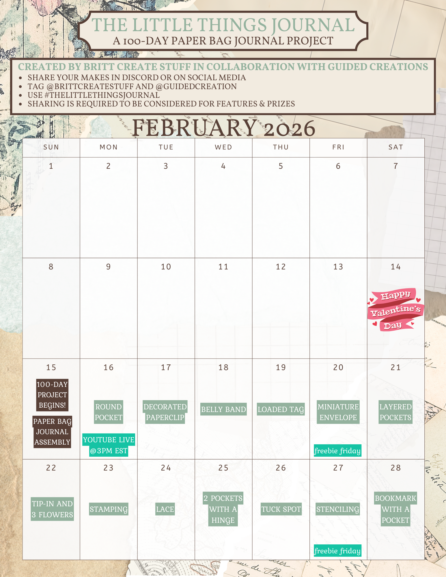 Follow along for live crafting sessions, workshop replays, and step-by-step tutorials connected to the 100 Day Project. This is where we slow down, create together, and build our journals one page at a time. If you love long-form crafting time, this is your spot.